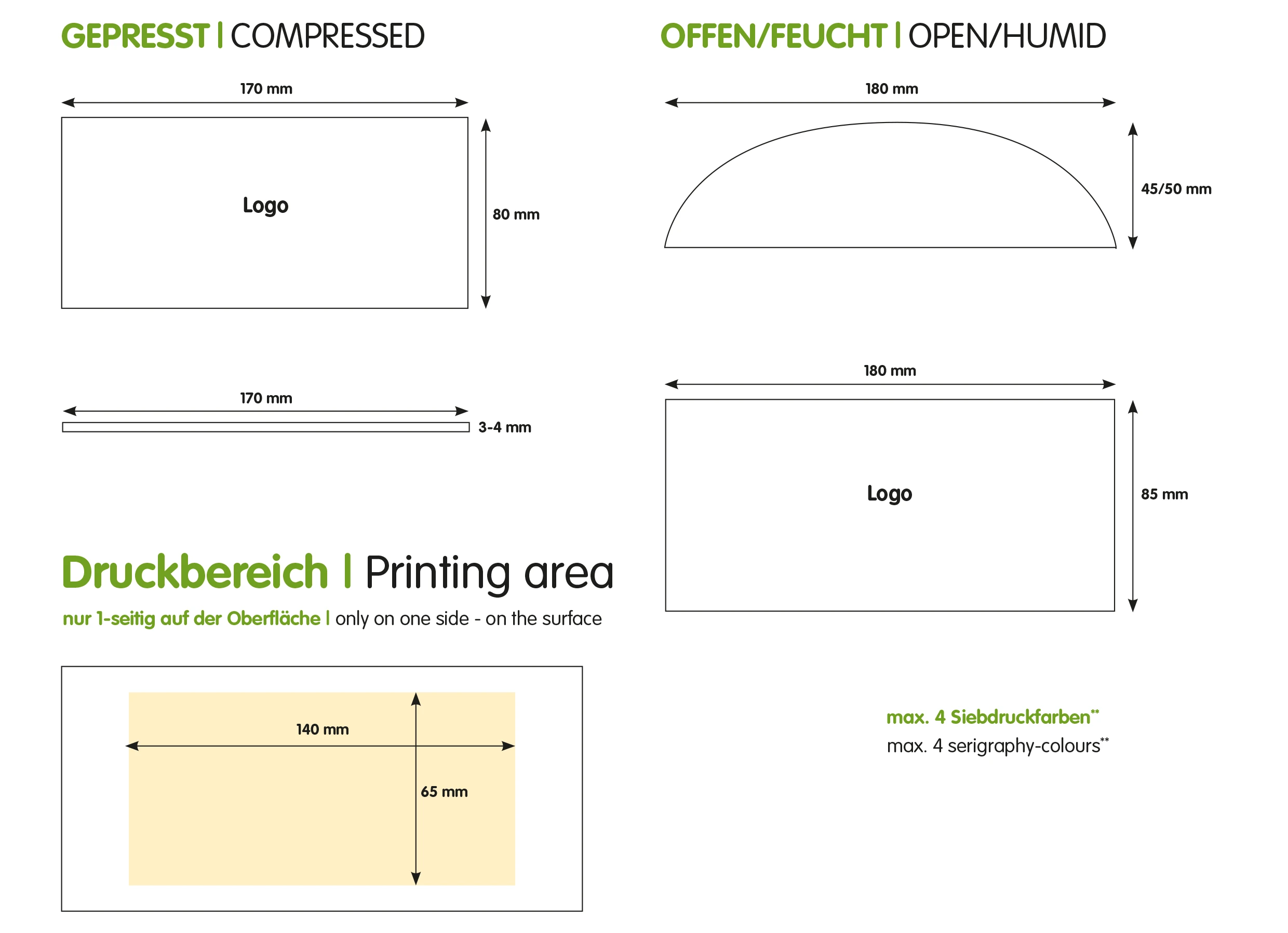 | Abmessung gepresst: | ca. 170 x 80 x 3-4 mm |