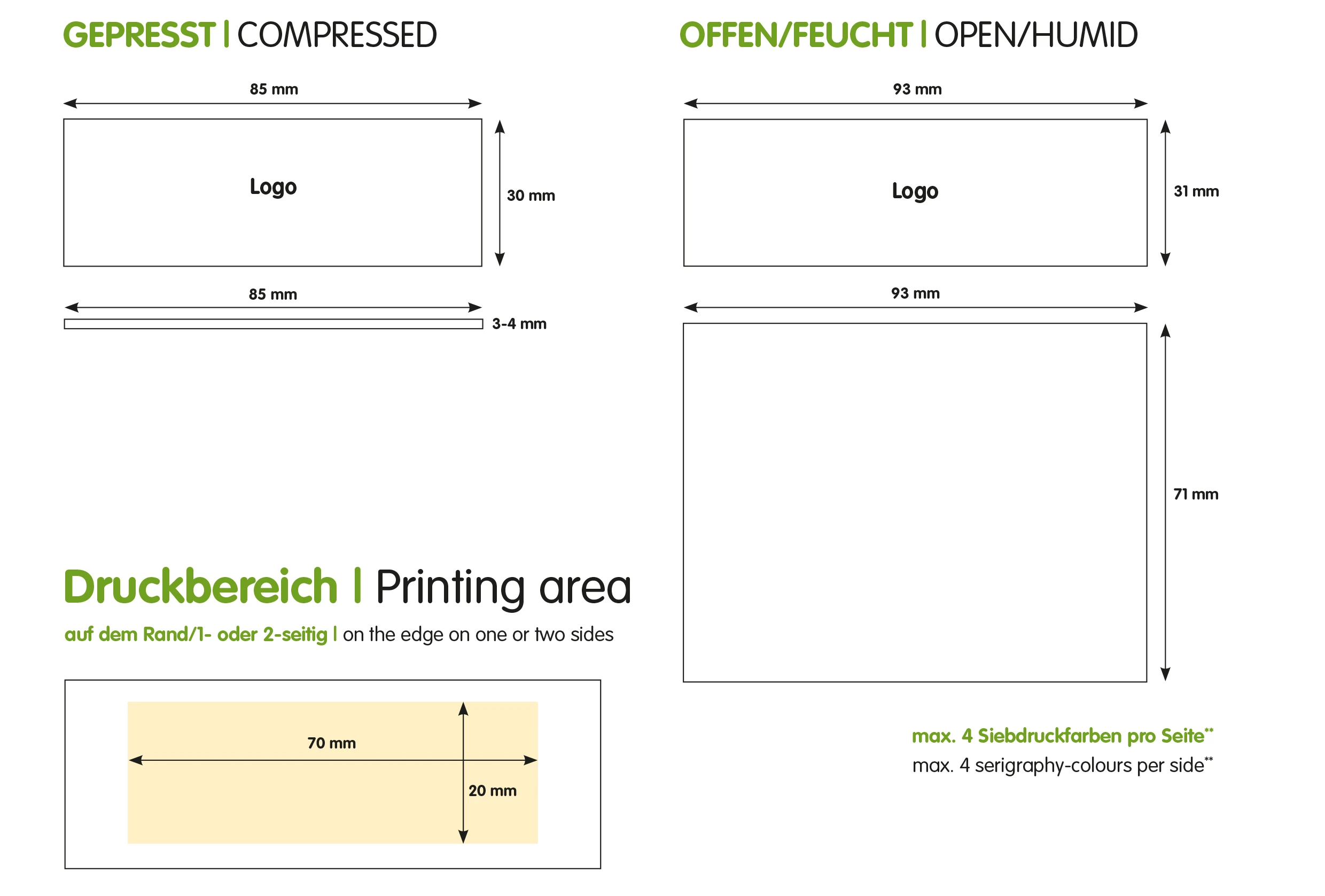 | Abmessung gepresst: | ca. 85 x 30 x 3-4 mm |