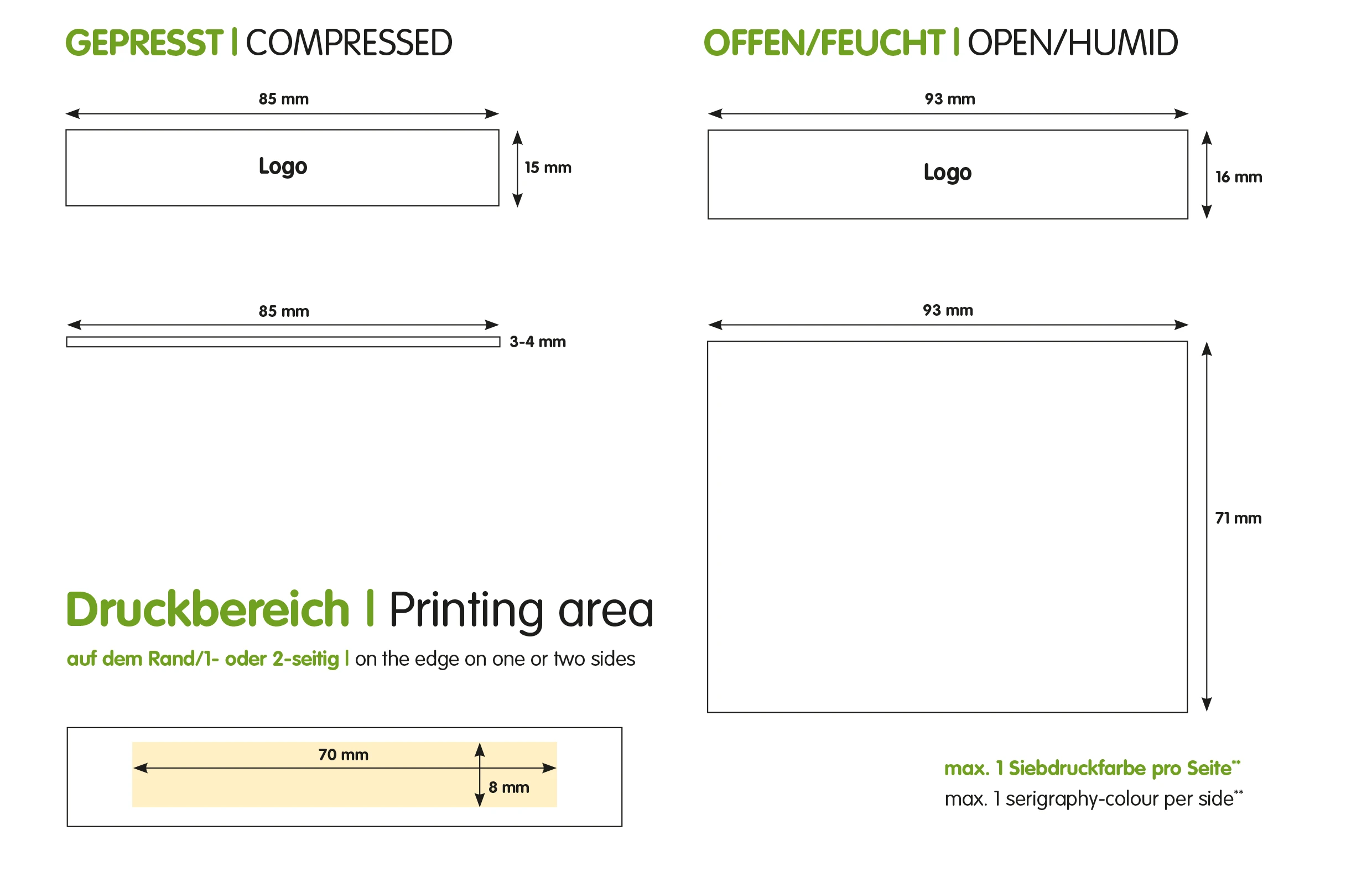 | Abmessung gepresst: | ca. 85 x 15 x 3-4 mm |